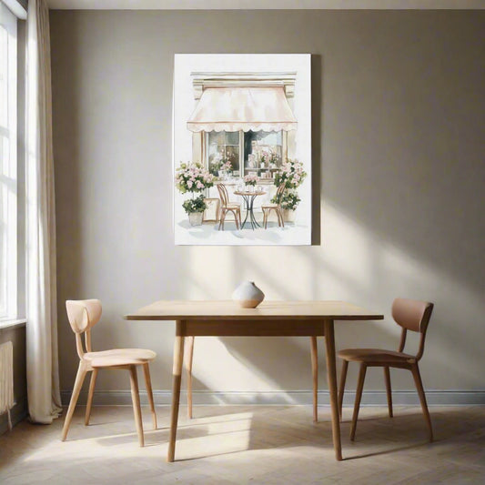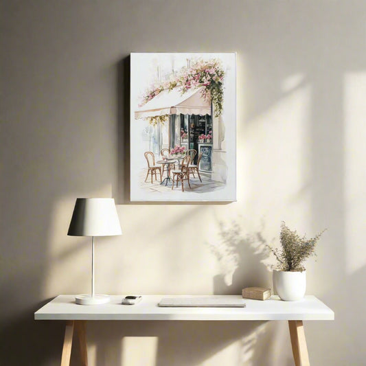 Watercolour | Parisian Café with Flower Pots | Wall Art | Canvas