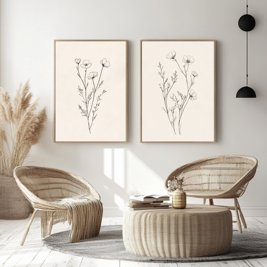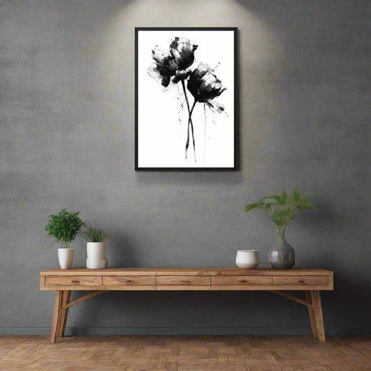 Botanical | Wall Art | Ink Flowers (2) | Framed Canvas