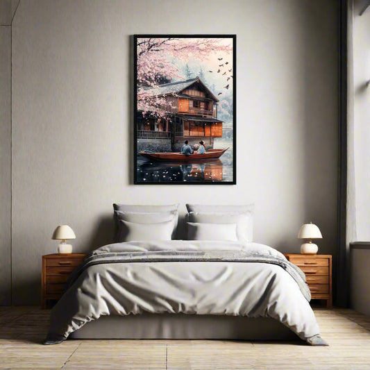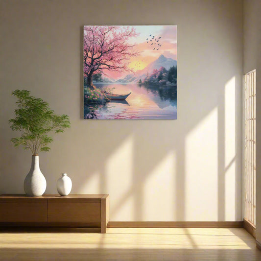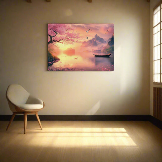 Japanese | Wall Art | The Cherry Blossom And The Skiff | Canvas