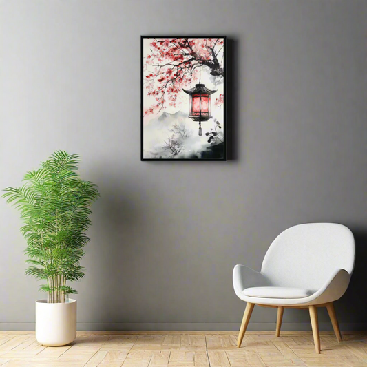 Japanese | Wall Art | Lantern under the Blossoms | Framed Print