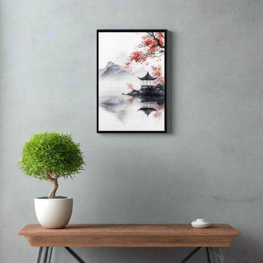 Japanese | Wall Art | Pavilion in the Mist | Framed Print