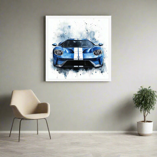 Cars | Wall Art | Blue Ford GT | Framed Print