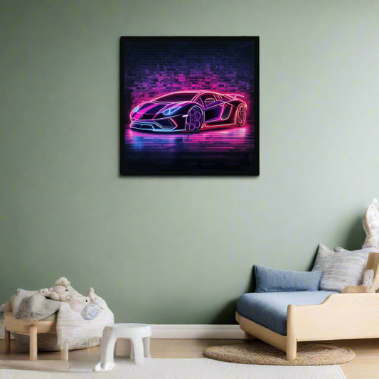 Cars | Wall Art | Neon Lamborghini | Framed Print