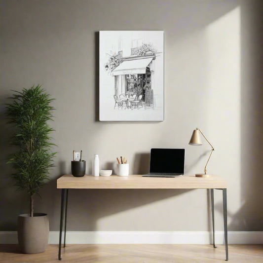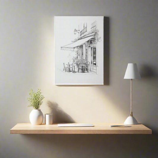 Pencil Drawing | Parisian Coffee Side Profile | Wall Art | Canvas