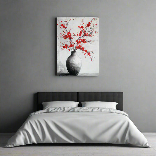 Japanese | Wall Art | Red Flowers in a Vase | Canvas