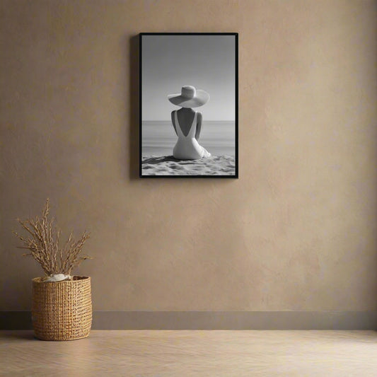 Black & White | Wall Art | Sitting on the Beach | Framed Print
