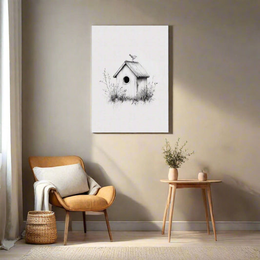 Pencil Drawing | Wall Art | Bird House | Canvas