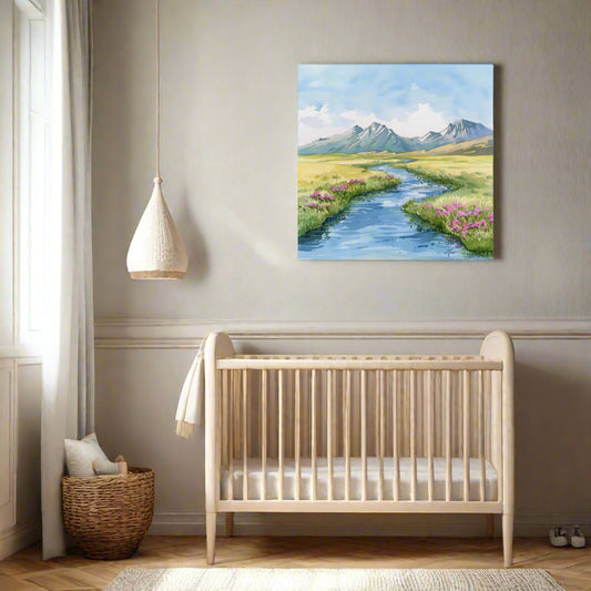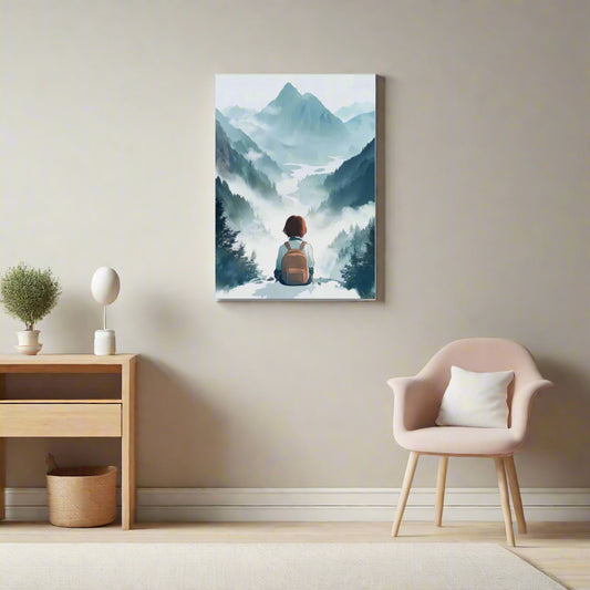 Children Watercolour | Wall Art | Girl on the Mountain Range | Canvas