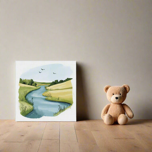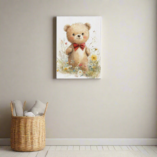 Children Watercolour | Wall Art | Teddy Bear in Wild Flowers | Canvas