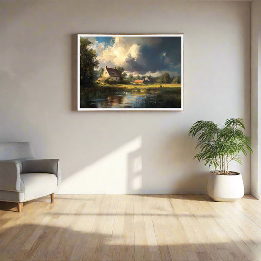 Landscape | Wall Art | The Farm and The Lake | Framed Print