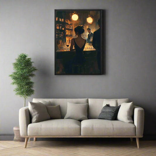 Portrait | Wall Art | Alone at the Bar | Framed Canvas
